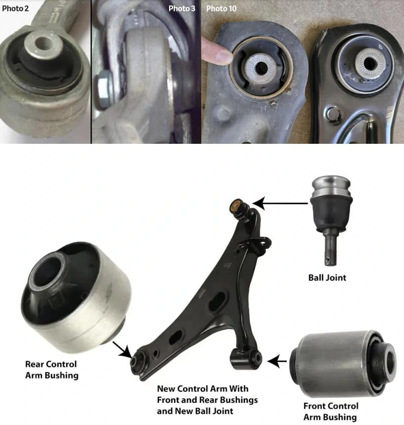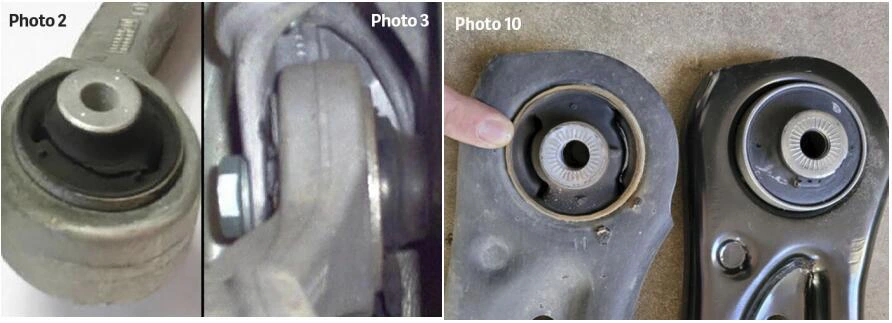 (Mga paghahambing na nagha-highlight ng sariwa, buo na bushings kumpara sa mga sira at sira.)